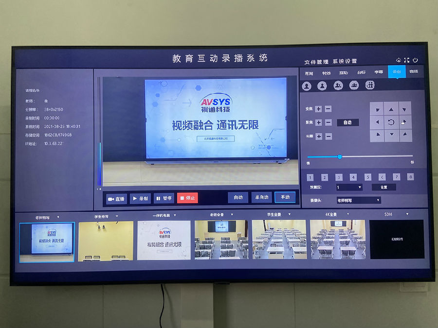项目包含:本项目共建设1个录播教室,使用1台K1体育科技(AVSYS)多媒体综合管理一体机,实现统一控制管理,音视频调度,会议室互动等应用。