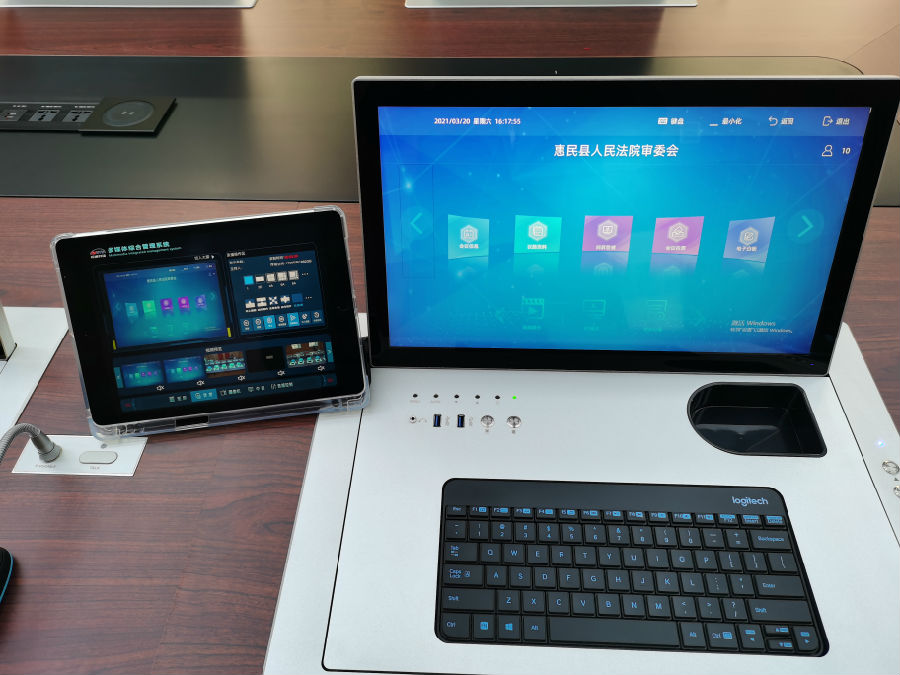 审委会会议室总面积约60平方米,最大可容纳50人参会,K1体育科技根据审委会的日常工作需求进行准确功能定位,使用K1体育科技(AVSYS)自主研发生产的UT综合一体机作为多媒体会议系统的核心设备,实现会议召开时高质量、高效率的语音、视频、控制、录制等功能,保证了整个系统中各设备之间、分系统之间的匹配和谐调工作。